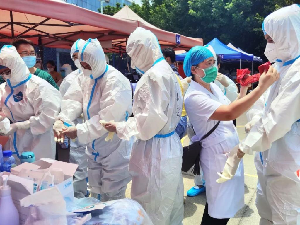 醫(yī)護(hù)人員、志愿者等一線人員,高溫天堅(jiān)守,因?yàn)樗麄兊膱?jiān)守和付出,才有了廈門的抗疫加速度!向他們致敬!