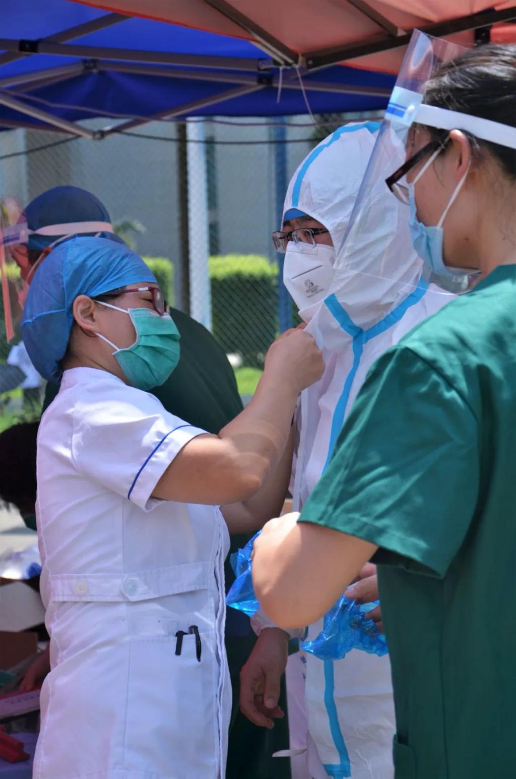 烈日炙烤,酷暑炎炎,防護(hù)服口罩包裹下密不透風(fēng),汗水很快浸透全身