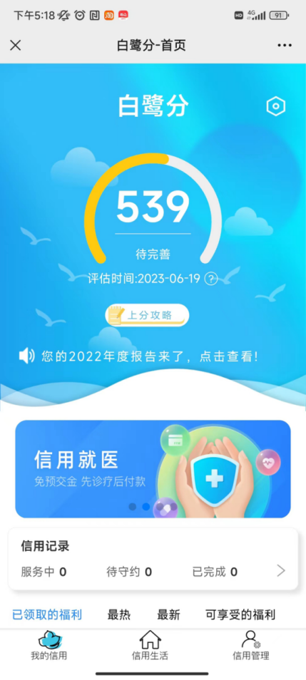 廈門市民可進入“白鷺分”微信公眾號,點擊菜單欄“白鷺分”進行注冊,注冊后選擇“信用就醫(yī)”功能板塊,依次點擊“申請開通”“獲取額度”等按鈕,自主選擇授信銀行,上傳身份證和進行人臉識別后即可開通信用就醫(yī)并獲取信用就醫(yī)專屬額度(500-3000元不等)。
