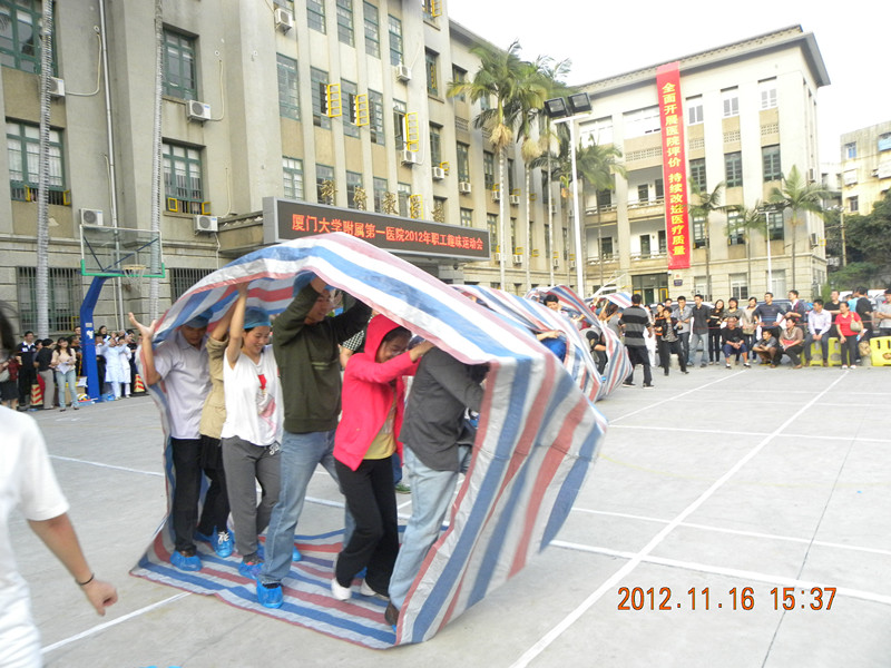 11月16日下午,在廈門大學(xué)附屬第一醫(yī)院行政辦公區(qū)前球場(chǎng)上處處洋溢著青春的歡樂,以“健康、快樂、和諧、友誼”為主題的職工趣味運(yùn)動(dòng)會(huì)在此隆重舉行。此次活動(dòng)共有全院11支分工會(huì)代表隊(duì),535名職工參加了比賽。趣味運(yùn)動(dòng)會(huì)設(shè)置時(shí)代列車、袋鼠夾球、趕球接力跑、高山流水、車輪滾滾、仙人指路、夾乒乓球接力、投接網(wǎng)球等項(xiàng)目。