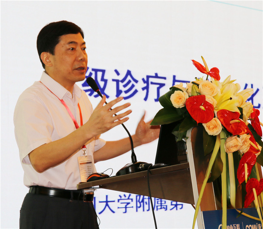廈門(mén)大學(xué)附屬第一醫(yī)院副院長(zhǎng)李衛(wèi)華教授,結(jié)合廈門(mén)大學(xué)附屬第一醫(yī)院多年研究和實(shí)踐,向與會(huì)專家學(xué)者分享了《廈門(mén)大學(xué)附屬第一醫(yī)院分級(jí)診療與信息化》。李衛(wèi)華副院長(zhǎng)介紹到廈門(mén)大學(xué)附屬第一醫(yī)院是福建省首家通過(guò)JCI國(guó)際認(rèn)證的醫(yī)院,一直注重信息化的創(chuàng)新和發(fā)展,目前已建成以“全預(yù)約、全自助、全回訪”為核心的信息應(yīng)用系統(tǒng)。今年4月,啟動(dòng)了福建省首家互聯(lián)網(wǎng)醫(yī)院,實(shí)現(xiàn)了線上線下一體化的就醫(yī)服務(wù)。同時(shí)作為中國(guó)醫(yī)師協(xié)會(huì)“糖尿病管理醫(yī)師協(xié)作網(wǎng)絡(luò)”廈門(mén)區(qū)域項(xiàng)目首家試點(diǎn)單位,開(kāi)通了全國(guó)首個(gè)基于互聯(lián)網(wǎng)醫(yī)院的糖尿病健康照護(hù)門(mén)診,醫(yī)生開(kāi)具的健康照護(hù)單可以流轉(zhuǎn)和委托到社區(qū)衛(wèi)生服務(wù)中心全科醫(yī)師和健康管理師來(lái)具體實(shí)施,進(jìn)一步深化了“三師共管”的模式,助推分級(jí)診療建設(shè)。