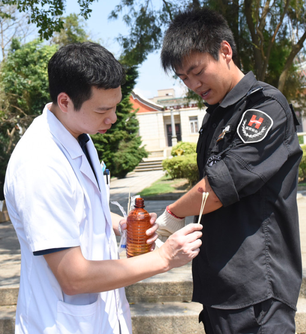 第一醫(yī)院醫(yī)務(wù)人員為被蟲咬的武警官兵治療