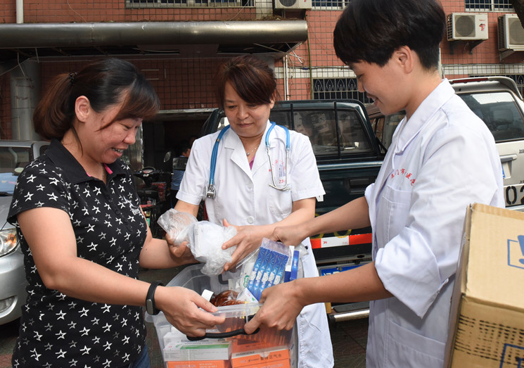 聽到環(huán)衛(wèi)工人被蟲咬傷,劃傷等急需藥品,第一醫(yī)院醫(yī)務(wù)人員及時給思明環(huán)衛(wèi)送來藥品2