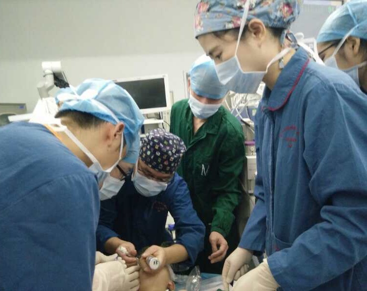 廈門大學附屬第一醫(yī)院耳鼻咽喉頭頸外科顱頜面外科關麗梅主任醫(yī)師、蘇若為博士,神經(jīng)外科郭劍峰主任醫(yī)師、弓凱博士、麻醉手術科陳振毅主任醫(yī)師、楊華凌副主任醫(yī)師、馬達醫(yī)生,黃曦主任醫(yī)師,欒海星主任醫(yī)師,劉順翠等共同為小明實施了顱頜面聯(lián)合整形。麻醉中,首先要解決人工呼吸道的建立,其次是手術難度高及患兒較小,術中麻醉管理理難度大,楊華凌副主任帶領團隊研究合理方案,安全完成氣道的建立及術中麻醉管理。