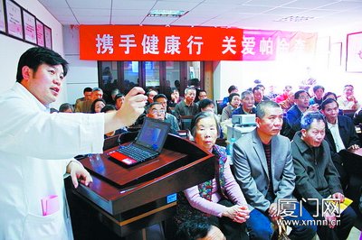廈門(mén)市腦科中心專家正在為市民講解帕金森氏病防治知識(shí)。
