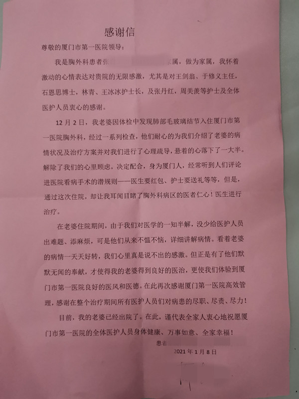 上一條:患者感謝血液科醫(yī)生徐兵、李志峰、林志娟、曾含嫣、劉農(nóng),護(hù)士李麗春及全體醫(yī)護(hù)人員