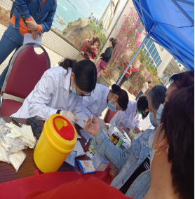 活動(dòng)小結(jié)(不少于150字): 2021年3月18日,呼吸內(nèi)科支部在支部書(shū)記史永紅、薛秀蘭的組織下,在我院院內(nèi)門(mén)診B區(qū)小廣場(chǎng)開(kāi)展“全國(guó)愛(ài)肝”日義診活動(dòng)。 全國(guó)愛(ài)肝日,是在我國(guó)乙肝、丙肝、酒精肝等肝炎發(fā)病率逐年上升,人民健康面臨嚴(yán)重威脅的情景下,為集結(jié)各種社會(huì)力量,發(fā)動(dòng)群眾,廣泛開(kāi)展預(yù)防肝炎肝病科普知識(shí)宣傳,保障人民身體健康而設(shè)立的。今年的主題:愛(ài)肝護(hù)肝、防治結(jié)合、遏制肝炎。我們通過(guò)發(fā)放宣傳單、答疑解惑、講解各型肝炎、肝硬化、肝癌的關(guān)系,查看患者病情,為患者開(kāi)辟就診綠色通道等方法,讓群眾百姓更多了解肝炎肝病的相關(guān)知識(shí)。 同時(shí),我們也義務(wù)為患者免費(fèi)快速檢測(cè)丙肝,采用指尖血,等待15分鐘即可知曉有無(wú)感染丙肝。 肝臟疾病是人類的高發(fā)病,作為感染科的醫(yī)護(hù)人員,我們還要繼續(xù)開(kāi)展類似的義診活動(dòng),為百姓服務(wù)。 |