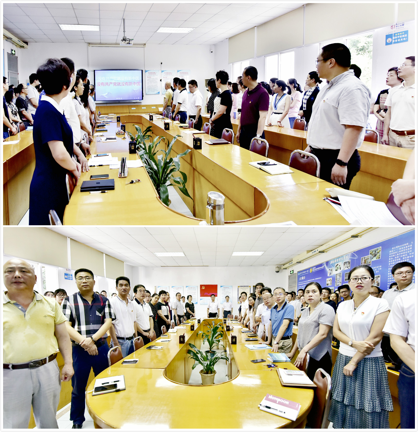 7月1日上午,第一醫(yī)院機(jī)關(guān)行政后勤全體黨員干部齊聚科教樓218會(huì)議室歌唱紅歌《沒(méi)有共產(chǎn)黨就沒(méi)有新中國(guó)》,值此“7.1建黨節(jié)”到來(lái)之際,第一醫(yī)院黨員干部用歌聲激情追憶中國(guó)共產(chǎn)黨成立98周年的光輝歷程,向偉大的黨獻(xiàn)上真誠(chéng)的祝福!