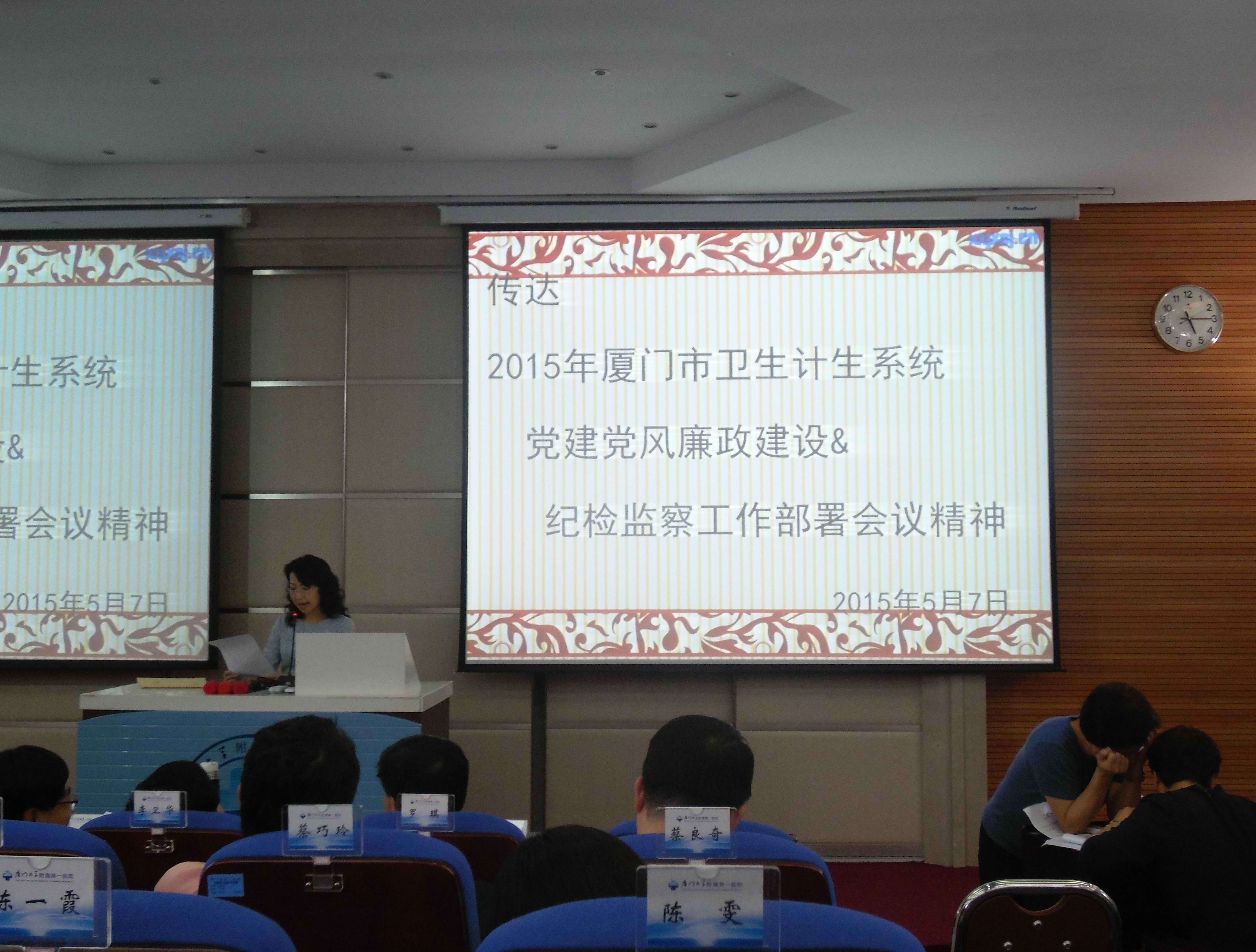 會(huì)上,院黨委副書記、紀(jì)檢書記林勤傳達(dá)學(xué)習(xí)了《2015年全市衛(wèi)生計(jì)生系統(tǒng)黨建黨風(fēng)廉政建設(shè)和紀(jì)檢監(jiān)察工作部署會(huì)會(huì)議精神》。