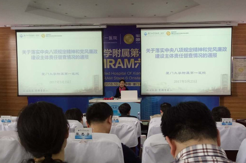 3月23日,廈門大學(xué)附屬第一醫(yī)院召開(kāi)全體中層干部大會(huì),紀(jì)委書(shū)記林勤在會(huì)上通報(bào)了落實(shí)中央“八項(xiàng)規(guī)定”精神和黨風(fēng)廉政建設(shè)主體責(zé)任專項(xiàng)督查情況。通報(bào)一針見(jiàn)血,不留情面,對(duì)存在問(wèn)題的單位直接點(diǎn)名,讓被查單位“臉紅心跳”,高度警醒,達(dá)到了督查動(dòng)真格、通報(bào)有震懾、問(wèn)題得改進(jìn)的目的。