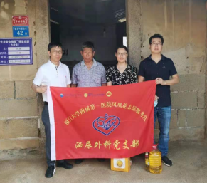 活動小結(jié)(不少于150字): 灑向人間都是愛,一枝一葉總關(guān)情。6月20日,在父親節(jié)這天,為進一步弘揚“奉獻、友愛、互助、進步”的黨員精神,泌尿外科黨支部心系困難群眾,不忘幫扶對象。在黨支部陳躍東書記的帶領(lǐng)下,支部一行四人自駕前往翔安內(nèi)厝鎮(zhèn)幫扶對象陳景家中進行慰問。在蓮前村溪邊后42號陳景家中,支部同志仔細察看陳景夏季生活情況、與老人親切交談,拉家常、問冷暖、仔細詢問老人家最近的生活、身體狀況等,讓老人感受到來自社會的溫暖和關(guān)愛。同時代表黨支部轉(zhuǎn)送黨員慰問金及生活所需糧油食用品。為老人家送去濃濃的關(guān)愛和節(jié)日的祝福。希望陳景老人能夠身體健康,生活幸福。 |