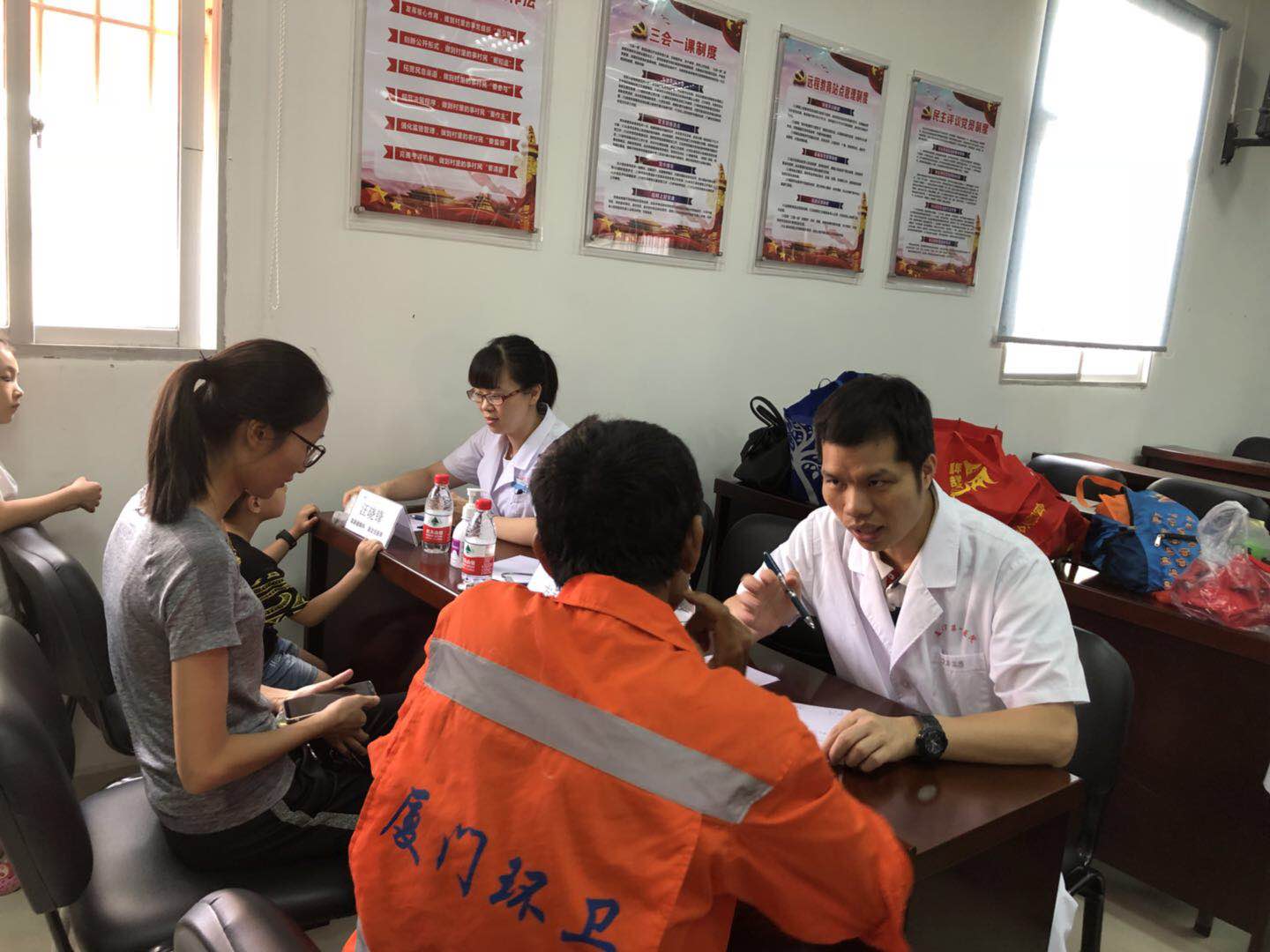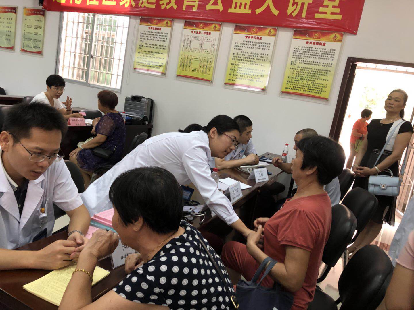 近日,廈門大學(xué)附屬第一醫(yī)院腦科中心黨支部第一黨小組黨員在陳月治護(hù)士長(zhǎng)組織帶領(lǐng)下,深入廈門市海滄區(qū)東孚鎮(zhèn),了解鄉(xiāng)村群眾疾病譜,與當(dāng)?shù)剜l(xiāng)村領(lǐng)導(dǎo)聯(lián)合開展“促進(jìn)百姓健康,醫(yī)療資源普濟(jì)鄉(xiāng)村父老”大型義診活動(dòng)。本次義診活動(dòng),除了選派了神經(jīng)內(nèi)科的醫(yī)療專家外,還邀請(qǐng)了整形外科、兒科、骨科、五官科、疼痛科、內(nèi)分泌糖尿病科、腫瘤科等科室的15名醫(yī)生和21名護(hù)士、志愿者12人。強(qiáng)大的醫(yī)療義診團(tuán)隊(duì)為此次義診活動(dòng)順利開展奠定了基礎(chǔ)。在村干部和鄉(xiāng)村婦聯(lián)走村串戶地廣泛宣傳動(dòng)員下,當(dāng)天參加義診的群眾達(dá)到300多人,據(jù)統(tǒng)計(jì),本次義診免費(fèi)監(jiān)測(cè)血糖158人次、床邊心電圖65人次,慢病管理防治知識(shí)宣傳手冊(cè)500多份。