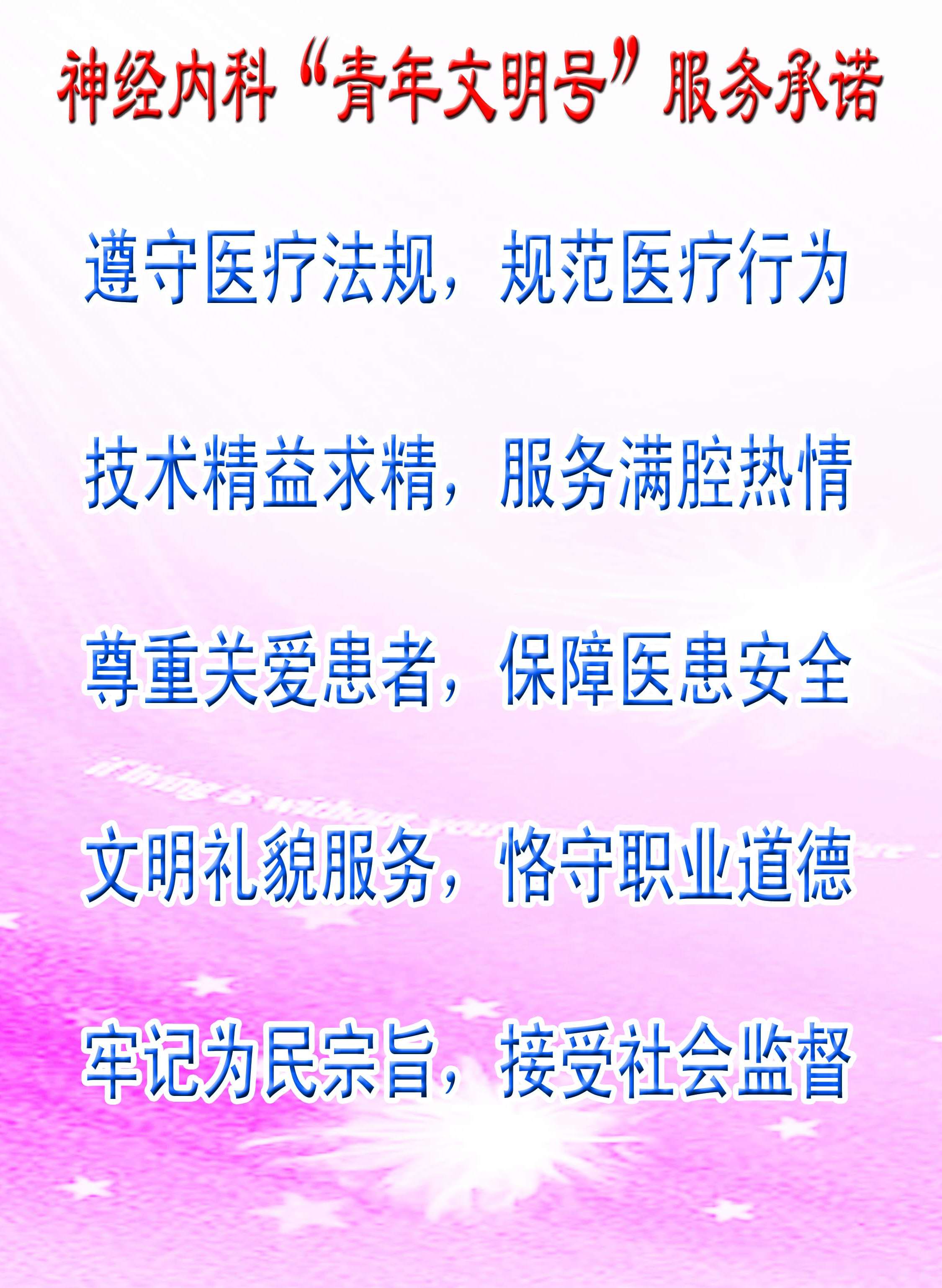 建設(shè)奉獻(xiàn)型青年文明號(hào),倡導(dǎo)愛(ài)崗敬業(yè),無(wú)私奉獻(xiàn)的道德風(fēng)尚是創(chuàng)建“青年文明號(hào)”活動(dòng)的主要宗旨??剖乙詮?qiáng)化青年職工“三德”教育為抓手,大力建設(shè)奉獻(xiàn)型青年文明號(hào)。 立足本崗位職責(zé),愛(ài)崗敬業(yè),勤奮工作,嚴(yán)格履行醫(yī)護(hù)人員行為規(guī)范,一切以病人為中心,時(shí)時(shí)為病人著想,把關(guān)愛(ài)送給每一位患者,盡力體現(xiàn)人性化服務(wù),努力營(yíng)造一個(gè)整潔、舒適、溫馨的治療環(huán)境。