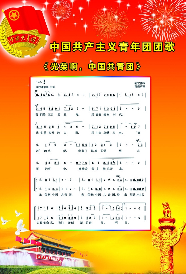 2003年7月22日至26日,中國共產(chǎn)主義青年團第十五次全國代表大會在北京隆重召開,本次會議通過了關(guān)于《中國共產(chǎn)主義青年團章程》(修正案)的決議,將《光榮啊,中國共青團》確定為《團歌》。
