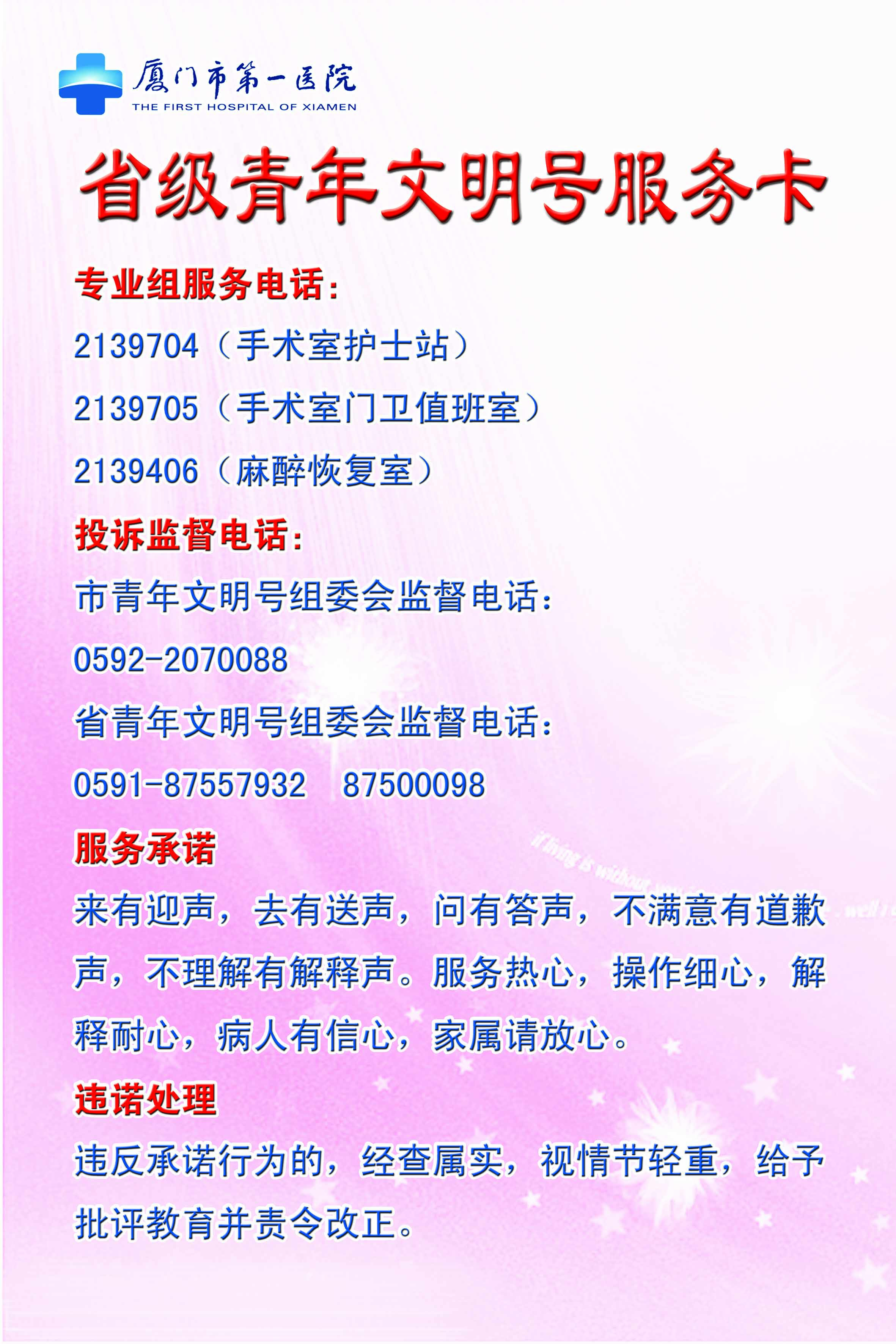 “把醫(yī)生的難點(diǎn)、患者的難點(diǎn)作為服務(wù)的重點(diǎn),把醫(yī)生的需求、患者的需求作為服務(wù)的內(nèi)容,把醫(yī)生是否滿意、患者是否滿意作為衡量工作的標(biāo)志”——這是科室全體醫(yī)護(hù)人員共同的心聲。在青年文明號(hào)這一品牌的帶動(dòng)下,緊密結(jié)合麻醉手術(shù)科的工作特點(diǎn),以倡導(dǎo)職業(yè)文明為核心,以規(guī)范文明為重點(diǎn),堅(jiān)持“立足本職、自我監(jiān)控、敬業(yè)守信、無(wú)私奉獻(xiàn)”的工作理念,出色地完成了各項(xiàng)工作任務(wù)。