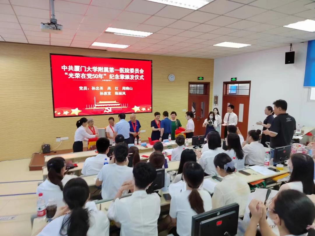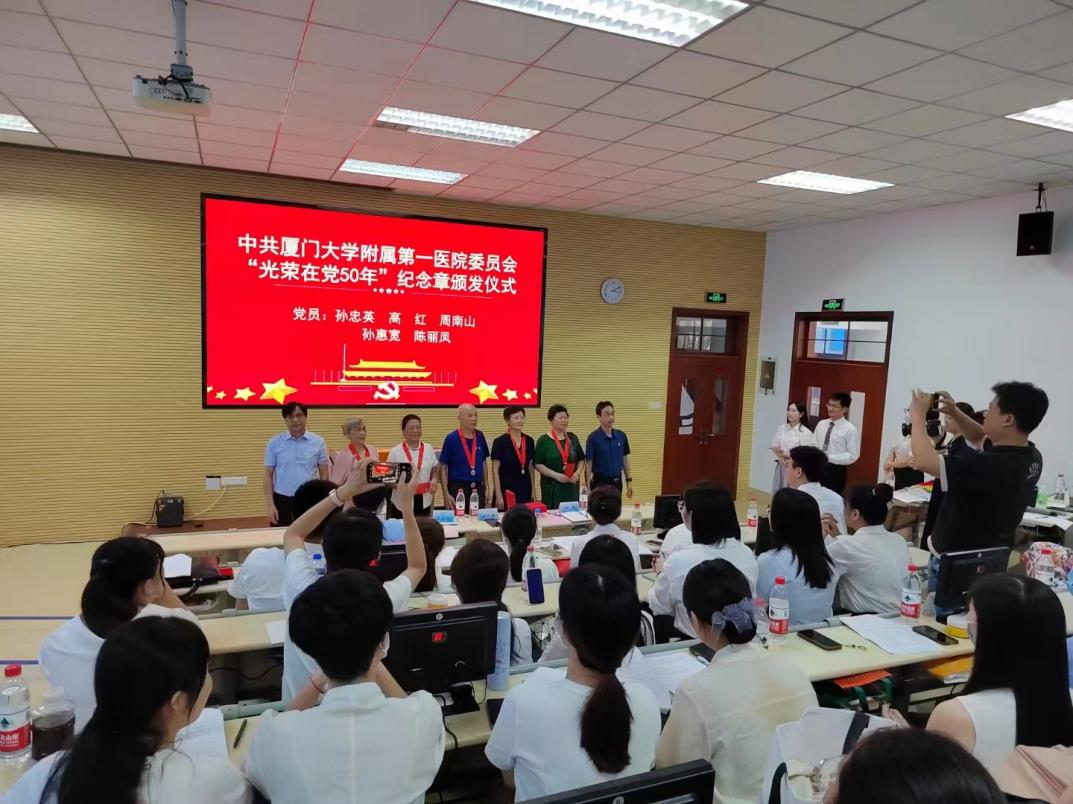 2023年6月30日下午,我院為5位榮獲“光榮在黨50年紀(jì)念章”的老黨員舉辦簡樸又隆重的集體頒授儀式,第一醫(yī)院黨委書記鄭林雄、黨委副書記王占祥院長為5位老黨員頒授紀(jì)念章。