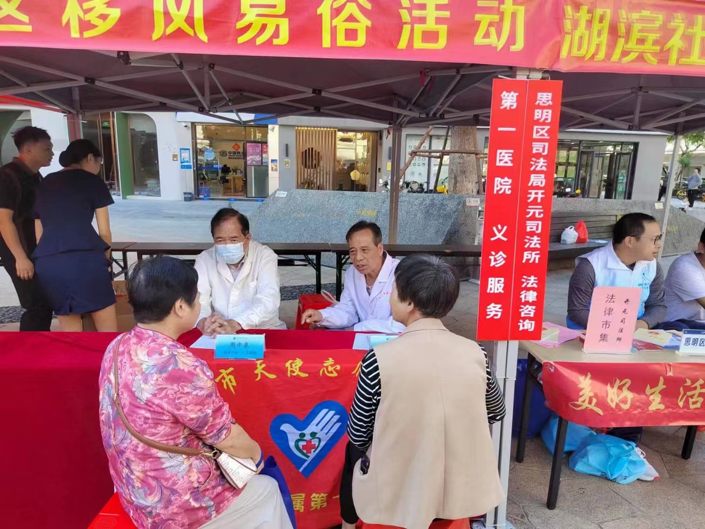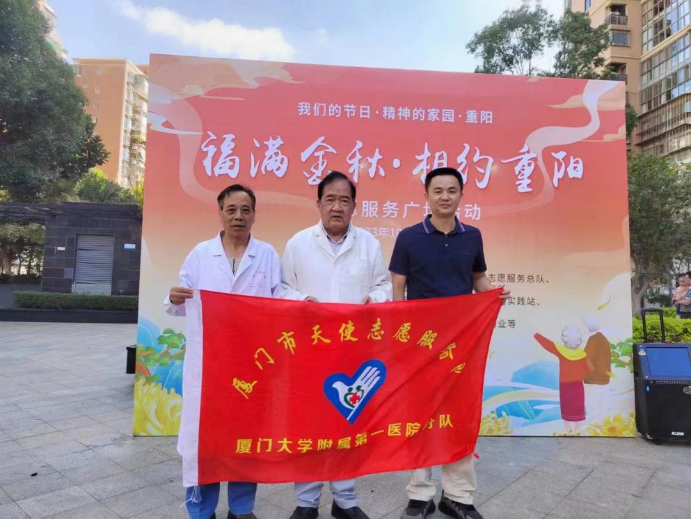 2023年10月23日上午,廈門大學(xué)附屬第一醫(yī)院組織老專家志愿者泌尿外科周中泉主任醫(yī)師、心血管內(nèi)科趙世平主任醫(yī)師2位老專家,參加湖濱社區(qū)黨委、居委會(huì)主辦在后濱路高峰會(huì)廣場(chǎng)的重陽(yáng)節(jié)敬老廣場(chǎng)活動(dòng),開(kāi)展義診健康咨詢活動(dòng)!