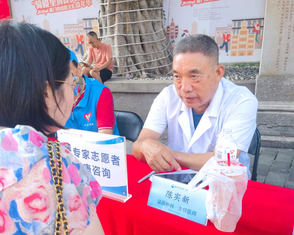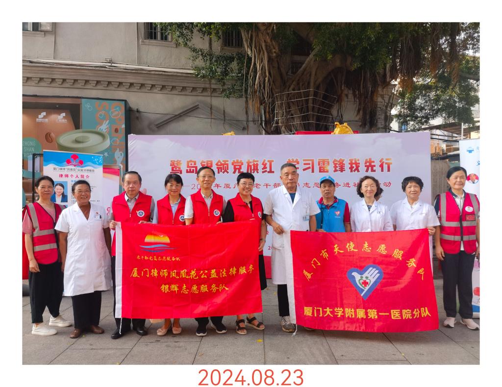 2024年8月23日下午,由市委老干部局、市委離退休干部工委攜手市衛(wèi)健委、市司法局、市律師協(xié)會(huì)、第一醫(yī)院、中華街道黨工委、思明區(qū)城市義工協(xié)會(huì)等部門,再次來(lái)到中山路步行街,開展“鷺島‘銀’領(lǐng)黨旗紅 學(xué)習(xí)雷鋒我先行”廈門市老干部黨員志愿服務(wù)進(jìn)社區(qū)活動(dòng)。現(xiàn)場(chǎng)邀請(qǐng)我院七位老專家和市律協(xié)四位老律師坐鎮(zhèn),開展義診與法律咨詢服務(wù)中山路大榕樹下,老專家們不顧炎炎烈日,熱情解答市民和游客咨詢,吸引不少游客圍觀點(diǎn)贊。