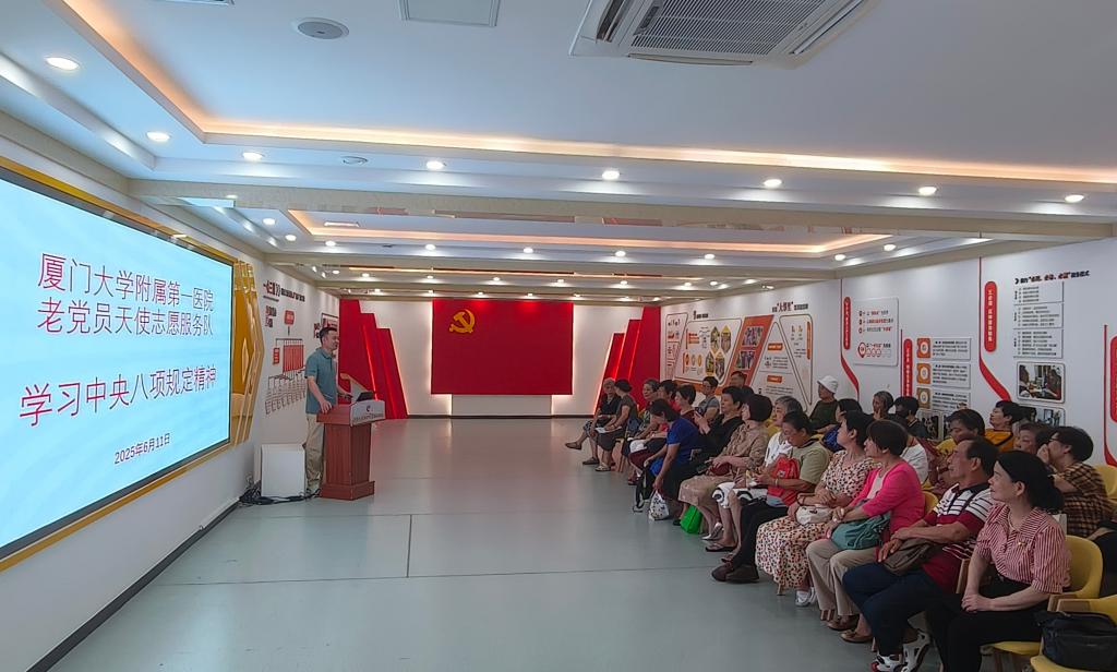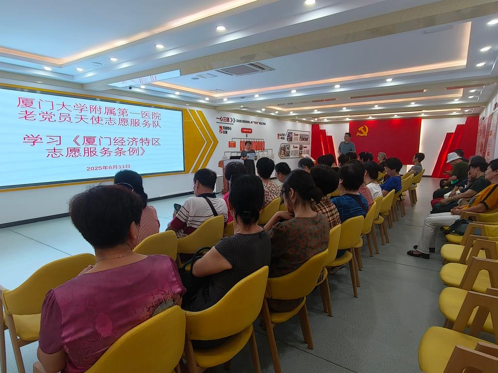 2025年6月11日,第一醫(yī)院組織門診老黨員天使志愿服務(wù)隊及中山路志愿服務(wù)驛站老專家老黨員志愿服務(wù)隊到深田社區(qū)黨群服務(wù)中心,參觀學習圖強小區(qū)“近鄰黨建”工作,接受思想教育,深切體會習近平總書記在廈門工作期間與小區(qū)居民之間“遠親不如近鄰”的深厚鄰里情誼。隨后,組織老黨員志愿者學習中央八項規(guī)定精神,以及《廈門經(jīng)濟特區(qū)志愿者服務(wù)條例》等有關(guān)志愿服務(wù)工作制度,進一步規(guī)范我院老黨員志愿服務(wù)工作,加強老黨員同志的黨性修養(yǎng),促進志愿服務(wù)隊團結(jié)協(xié)作,更好助力醫(yī)院發(fā)展。