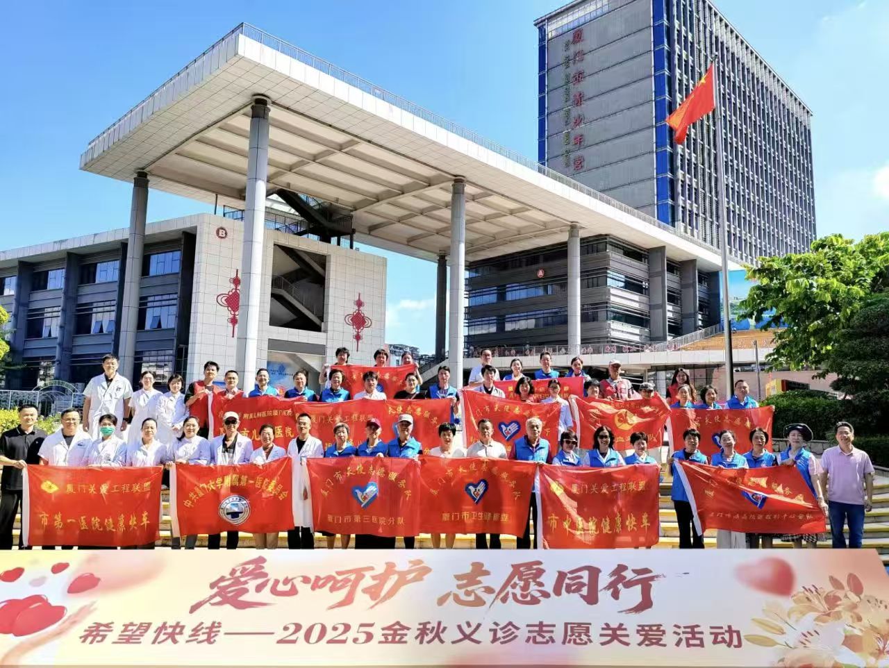 2025年10月18日上午,第一醫(yī)院組織老專家志愿者及在職醫(yī)護(hù)志愿者,參加由市關(guān)工委、市衛(wèi)健委、市青少宮組織的在市青少宮的“金秋義診”活動。市關(guān)工委胡家榕副主任、市衛(wèi)健委許龍副主任等領(lǐng)導(dǎo)看望慰問現(xiàn)場義診專家志愿者。
