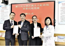 2021年3月25日,黨委李衛(wèi)華書記,黨委副書記兼工會主席林勒,工會副主席李志安參加了廈門天元酒店攜手天虹商場致敬抗疫英雄捐贈儀式。會上李衛(wèi)華書記代表院方講話、黃輝萍主任講述了她們的抗疫故事