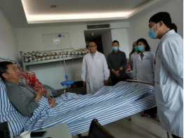 林書記一行又到我院血液科病房,看望郭文安的父親。在郭文安出征博茨瓦納后,他父親生病入院,為不讓郭文安有任何顧慮和擔心,醫(yī)院提供了全面的幫助。郭文安所在的干部保健二區(qū)同事時不時來病房看望老人。黨委副書記林勤、紀委書記那偉代表全院對郭文安舍小家為大家的奉獻精神致以崇高的敬意,并囑咐老人家一定要保重身體、早日康復。醫(yī)院是他們堅實的堡壘,將給予全方面的支持,讓他們安心,也讓郭文安放心勇往直前。