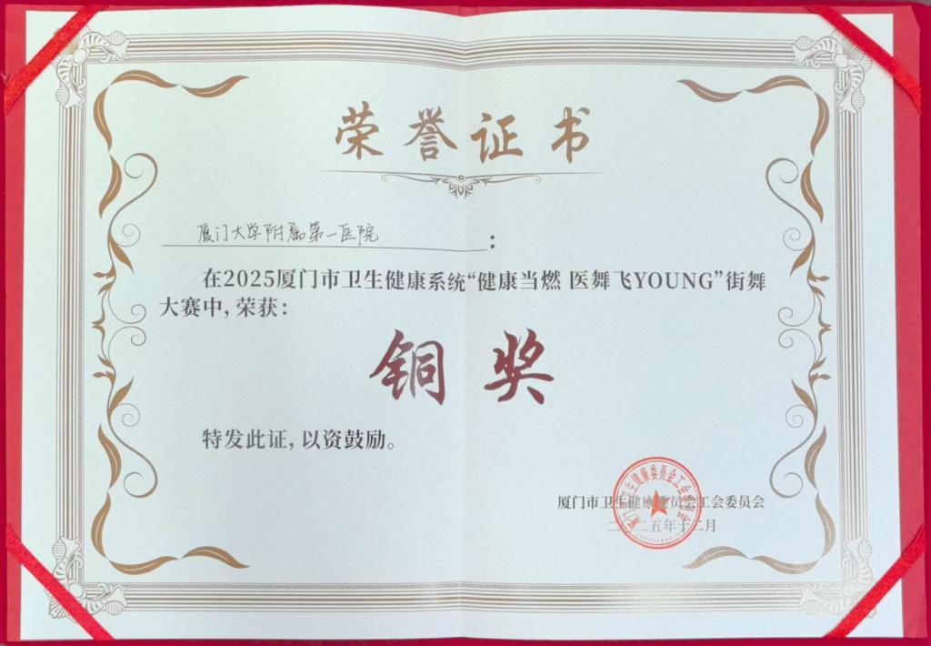 醫(yī)院始終堅持“以人為本”的發(fā)展理念,鼓勵職工在精湛醫(yī)術之外,拓展多元興趣,實現(xiàn)全面發(fā)展。銅獎這份榮譽不僅是對隊員們近兩個月來刻苦排練與藝術創(chuàng)造力的肯定,更是廈門大學附屬第一醫(yī)院注重人文關懷、聚力團隊建設、培育全面發(fā)展的醫(yī)院文化的生動體現(xiàn)。未來,醫(yī)院將繼續(xù)搭建各類文體平臺,營造積極向上、團結和諧的執(zhí)業(yè)環(huán)境,激勵全體職工以更飽滿的激情、更昂揚的姿態(tài),攜手執(zhí)守護佑健康之翼,為廈門市衛(wèi)生健康事業(yè)的高質(zhì)量發(fā)展貢獻更大力量。