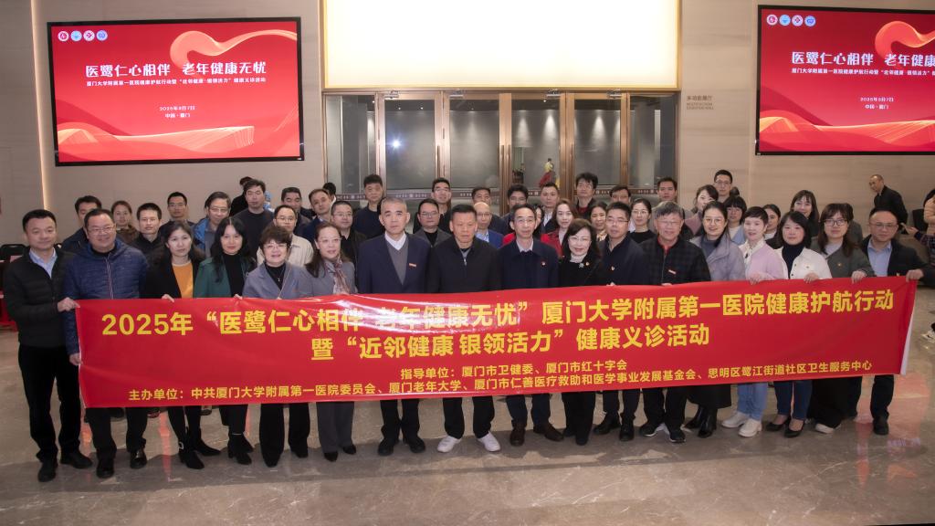 為弘揚紅十字精神和大醫(yī)精神,提高老年人對常見疾病的認知及自我保健意識,倡導社會關注老年健康,促進家庭幸福和社會和諧。我院黨委在廈門市衛(wèi)健委、廈門市紅十字會等單位的指導下,與廈門老年大學、廈門市仁善醫(yī)療救助和醫(yī)學事業(yè)發(fā)展基金會、健康報福建記者站和思明區(qū)鷺江街道社區(qū)衛(wèi)生服務中心等單位聯(lián)合舉辦“醫(yī)鷺仁心相伴 老年健康無憂”廈門大學附屬第一醫(yī)院健康護航行動暨“近鄰健康 銀領活力”健康義診活動。
