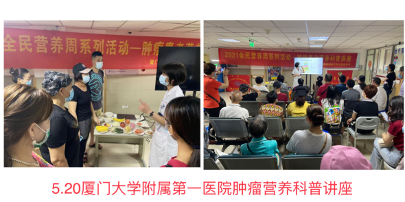 活動小結(jié)(不少于150字): 2021年第七屆全民營養(yǎng)周以“合理膳食、營養(yǎng)惠萬家”為主題,在中國營養(yǎng)學會的帶動下,全國30多個省市的營養(yǎng)專家和科研院所、地方營養(yǎng)學會、各級醫(yī)院營養(yǎng)科等相關(guān)機構(gòu)在5月11-22日期間,開展聲勢浩大的健康教育和營養(yǎng)宣傳活動。為推動合理膳食進家庭、進餐廳、進食堂、進學校,促進國民健康飲食習慣的形成和鞏固,將合理膳食行動落到實處,廈門大學附屬第一醫(yī)院營養(yǎng)科在福建省營養(yǎng)學會及廈門大學附屬第一醫(yī)院的大力支持下成功開展營養(yǎng)科及多學科義診、科普講座及線上直播活動。 在營養(yǎng)周來臨之前我科已通過醫(yī)院公眾號、報紙、門診海報等多種媒體進行活動宣傳,全科8位工作人員到各臨床科室、門診發(fā)放營養(yǎng)知識宣傳手冊及線上營養(yǎng)直播通知,使得很多市民和病友們對合理膳食有一個基本的了解,也讓有營養(yǎng)咨詢需要的人知曉此次直播活動并及時參加。整個營養(yǎng)周發(fā)放宣傳手冊約500份。 5月11日,我們營養(yǎng)科聯(lián)合胃腸外科、內(nèi)分泌科、呼吸內(nèi)科、婦科等科室開展以“告別負重前行,享“瘦”生活美好”為主題的多學科義診活動,從不同的專業(yè)方向為肥胖及超重患者解決疑惑,制定科學減重方案。 5月17日,營養(yǎng)科聯(lián)合兒科通過“騰訊會議平臺”開展以“關(guān)注兒童肥胖 關(guān)注兒童健康”為主題的線上公益講座,兒科白海濤主任講述了兒童肥胖的診斷標準及危害,連群主任給大家詳細講解了肥胖與兒童身高的關(guān)系,最后營養(yǎng)科楊志平主任從生活方式干預方面給大家分享了如何科學防治兒童肥胖,最后還留出時間為線上朋友提出的問題進行解答,此次線上活動組織有序、內(nèi)容豐富,網(wǎng)友參與度高,上線觀眾達1.3萬。 5月18日,營養(yǎng)科聯(lián)合腎內(nèi)科聯(lián)合開展了“醫(yī)學營養(yǎng)減重”“腎病營養(yǎng)”義診活動,營養(yǎng)科及腎內(nèi)科15名醫(yī)生護士參與,借助食物模型,給大家宣教該吃什么樣的食物,該吃多少能夠控制體重,并免費發(fā)放了營養(yǎng)知識宣傳手冊。我們?yōu)榍皝碜稍兊膬和⑶嗌倌?、孕婦、老人、在院患者提供一對一的營養(yǎng)咨詢和指導,還免費測量血壓血糖和人體成分分析。本次義診活動到場參與咨詢的群眾約120人,深受廣大市民朋友的好評。 5月19日 我科林勇主治醫(yī)師參與廈門衛(wèi)視“兩岸直航”談話節(jié)目,聊有關(guān)“一人食”的社會現(xiàn)狀以及可能存在的飲食和營養(yǎng)問題。了解到在快節(jié)奏的工作及生活環(huán)境下,“一人食”已然成為越來越多年輕人的選擇,但伴隨著帶來膳食不均衡、營養(yǎng)不良等問題。針對這些問題,林勇醫(yī)生從專業(yè)的角度出發(fā)給出應(yīng)對辦法,比如自制便當、點套餐、大雜燴等等盡量豐富食物種類等建議,受到廣大年輕人的歡迎。 5月19日,營養(yǎng)科楊志平主任在急診重癥開展了“‘重癥患者的營養(yǎng)支持“學術(shù)講座,為醫(yī)生護士講解了重癥患者腸內(nèi)腸外營養(yǎng)支持要點及最新指南,現(xiàn)場學習氣氛熱烈,醫(yī)務(wù)人員踴躍提問。本次活動參與人數(shù)達30人以上。 5月19日,營養(yǎng)科聯(lián)合腎內(nèi)科通過“騰訊會議平臺”開展以“腎病營養(yǎng)”為主題的線上公益講座,楊雪帆主治醫(yī)師講述了慢性腎病的能量補充問題,呼吁腎友們警惕營養(yǎng)不良的發(fā)生,陳幸主任給大家詳細講解了影響慢性腎臟病的因素及預防,最后每人還留出20分鐘為腎友們解疑答惑,線上腎友十分活躍,積極參與學習和提問。此次線上活動,上線觀眾達200人次。 5月20日,營養(yǎng)科聯(lián)合腫瘤放療科開展“腫瘤放療患者營養(yǎng)治療”系列科普講座,李淑楨醫(yī)師給患者們講解了腫瘤營養(yǎng)的重要性,并通過食物模型以及具體膳食的分享教會患者什么才是適合他們的飲食,現(xiàn)場患者學習熱情高漲,踴躍提問。本次活動到場患者及家屬約100人,活動反響良好。 |