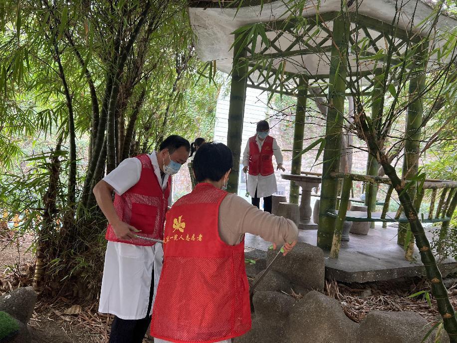 大家穿上了志愿服務(wù)紅馬甲,在院區(qū)內(nèi)分別展開相關(guān)文明勸導(dǎo)工作。拿著垃圾鉗、垃圾袋等工具進行垃圾的清理,志愿者清理花壇、綠植里面散落的垃圾、煙頭。對未在指定區(qū)域吸煙人員進行引導(dǎo)。對門診A區(qū)、B區(qū)辦理業(yè)務(wù)的人員進行“一米線”、正確佩戴口罩等文明勸導(dǎo)工作。