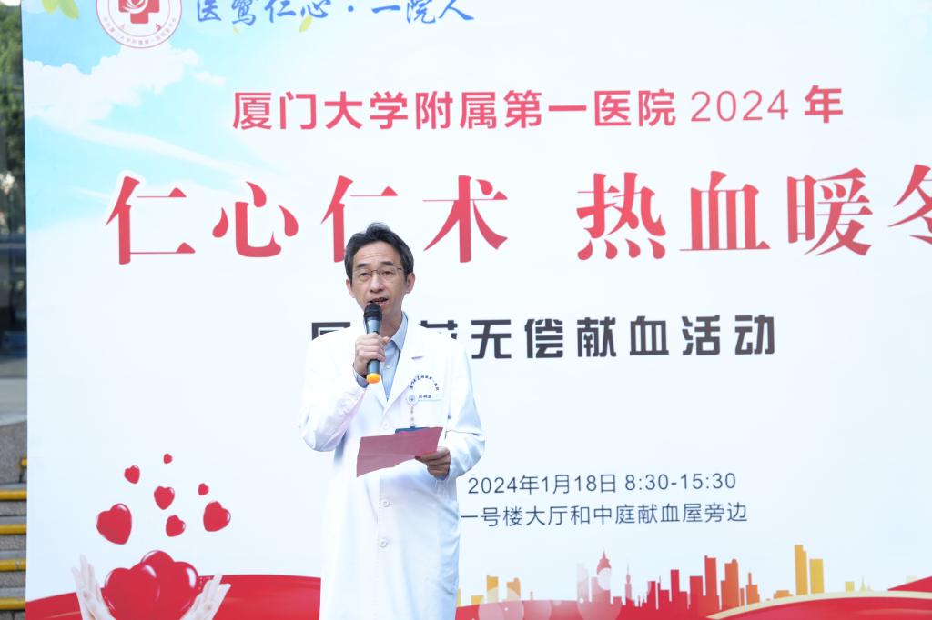 為保障我市冬春季醫(yī)療機構(gòu)臨床用血需求,2024年1月18日我院1號樓前廣場隆重舉行廈門市衛(wèi)生健康委員會2024年“仁心仁術(shù) 熱血暖冬”鳳凰花無償獻血活動啟動儀式暨廈門大學(xué)附屬第一醫(yī)院職工無償獻血活動。