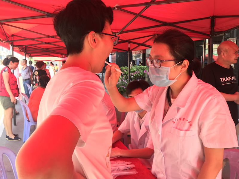 9月20日下午,第三十個(gè)“9·20愛牙日義診活動(dòng)暨2018年‘口腔健康公益宣傳活動(dòng)’”在中山路小馬舞臺(tái)舉行。 此次義診活動(dòng)由廈門大學(xué)附屬第一醫(yī)院口腔科及中華街道社區(qū)衛(wèi)生服務(wù)中心共同籌劃,我院義診志愿服務(wù)隊(duì)伍由蔡巧玲主任帶領(lǐng),杜歐醫(yī)生及楊燕宗醫(yī)生參與.本次義診的主旨在于宣傳口腔健康知識(shí),提升口腔健康意識(shí),為市民提供免費(fèi)的口腔咨詢及檢查。