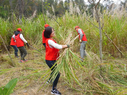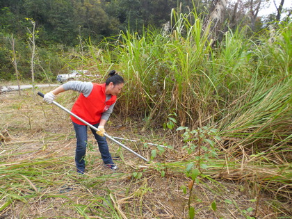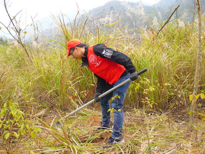 經(jīng)過一小時(shí)的車程,志愿者們來到了位于集美坂頭的國(guó)有防護(hù)林場(chǎng)。在林場(chǎng)工作人員的引導(dǎo)下,志愿隊(duì)伍來到山坡上,一人一件馬甲,一人一把鋤頭,準(zhǔn)備就緒,志愿者們便投入到了勞動(dòng)當(dāng)中。志愿服務(wù)過程中,大家干勁十足,勞動(dòng)場(chǎng)面熱火朝天。讓人感動(dòng)的一幕是來自急診科的陳光毅一下夜班就立即加入到志愿勞動(dòng)當(dāng)中,在志愿服務(wù)的過程中他絲毫都不覺得累,掄起袖子,抬起鋤頭,賣力地干活,我們開玩笑地說:“年輕真好!”另外,兩名彩超室的志愿者——陳斐娜和黃燕萍都是利用中午的時(shí)間,加班加點(diǎn)做完病人的檢查,為的就是能在志愿隊(duì)伍出發(fā)前及時(shí)趕到。參加活動(dòng)的其他志愿者也都是在百忙之中,抽空參加志愿服務(wù),他們的志愿服務(wù)精神同樣值得我們學(xué)習(xí)。