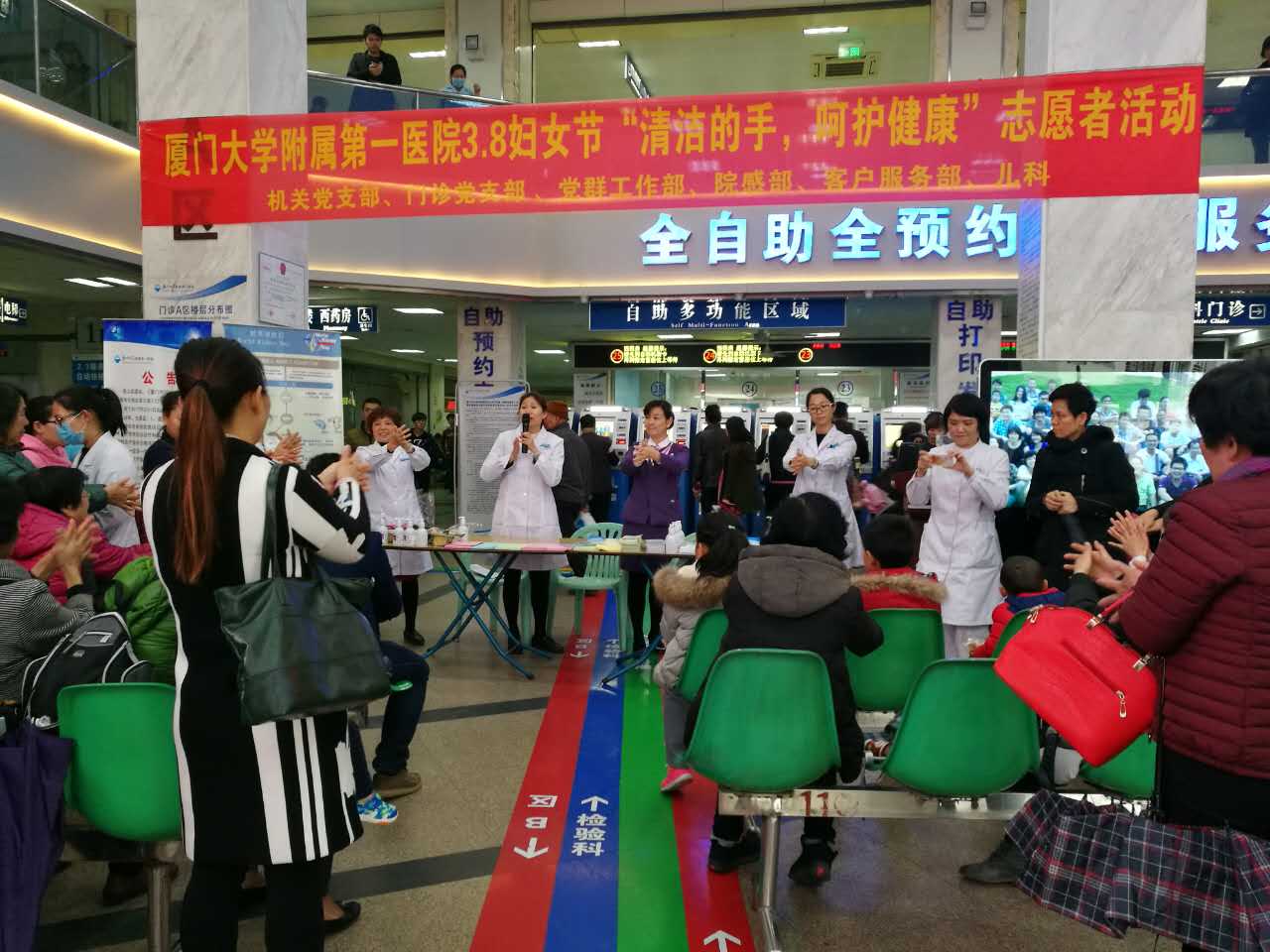 陽春三月,十里桃花,最是明媚盎然的季節(jié),各種腸道、呼吸道傳染病也紛紛不甘寂寞來湊熱鬧,來自四海八荒的女神們最牽掛的的是家人的健康。醫(yī)務(wù)人員最了解患者的追求健康平安的心。為此3.8婦女節(jié)一早,第一醫(yī)院機(jī)關(guān)黨支部、門診黨支部、黨群工作部、院感部、客戶服務(wù)部、兒科就在廈門大學(xué)附屬第一醫(yī)院門診A區(qū)大廳開展以“清潔的手,呵護(hù)健康”和“無煙醫(yī)院控?zé)熜袆?dòng)”為主題的學(xué)雷鋒志愿者活動(dòng),為大家送上3.8婦女節(jié)禮物。以患者安全為中心,營造醫(yī)患共同參與,促進(jìn)健康的文化氛圍。