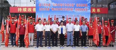 8月25日下午,廈門(mén)市創(chuàng)建“公共文明行為典范城”現(xiàn)場(chǎng)觀摩暨衛(wèi)生計(jì)生委“做公共文明行為倡導(dǎo)者”活動(dòng)在廈門(mén)大學(xué)附屬第一醫(yī)院?jiǎn)?dòng)。此次活動(dòng)由市委文明辦、市衛(wèi)生計(jì)生委聯(lián)合主辦,廈門(mén)大學(xué)附屬第一醫(yī)院承辦。市委常委、市委宣傳部部長(zhǎng)葉重耕,市政府國(guó)桂榮副市長(zhǎng)等市領(lǐng)導(dǎo),市人大僑外委郭星達(dá)主任、市衛(wèi)生計(jì)生委楊叔禹主任以及各相關(guān)單位分管領(lǐng)導(dǎo)等出席活動(dòng),并為廈門(mén)大學(xué)附屬第一醫(yī)院等首批4個(gè)公共文明行為示范點(diǎn)、23支“鳳凰花志愿服務(wù)隊(duì)”授牌、授旗。市衛(wèi)生計(jì)生委黨組成員、直屬黨委、機(jī)關(guān)黨委書(shū)記、市計(jì)生協(xié)會(huì)常務(wù)專(zhuān)職副會(huì)長(zhǎng)魏曉萌主持儀式。