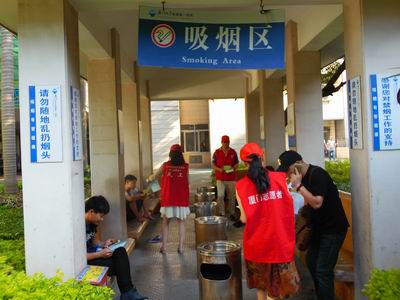 5月31日是第29個世界無煙日,廈門大學附屬第一醫(yī)院中庭花園出現(xiàn)了一群身穿紅馬甲,頭戴志愿者帽的禁煙衛(wèi)士,由醫(yī)院黨群工作部組織的“人人參與控煙活動,共創(chuàng)健康無煙醫(yī)院”控煙活動在院區(qū)內(nèi)展開,來自不同科室的20余名志愿者踴躍參與。雖然頂著大太陽,但是志愿者們認真服從安排,按照分配前往指定地點開展控煙活動。