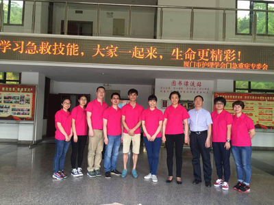 2016年4月28日下午,醫(yī)院急重癥醫(yī)護人員響應醫(yī)學會科普宣傳教育活動號召,組織醫(yī)護人員到部隊進行“學習急救技能,大家一起來,生命更精彩!”為主題的科普活動。活動由廈門市護理學會副理事長,第一醫(yī)院護理總監(jiān)丁玉蘭主任帶隊,急診科藺際龑主任、重癥醫(yī)學科護士長趙莉莉、護士龔華峰及其他兄弟醫(yī)院急診與重癥醫(yī)學骨干參與。