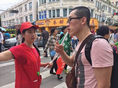 4月24日下午,美麗心靈志愿服務系列活動走進中山路,我院共有十余名志愿者參加本次活動,活動以“傳遞愛心,文明出行”為主題,內(nèi)容包括:交通督導,引導游客走斑馬線、按信號燈行走;文明宣傳,宣傳做文明有禮的人、勸誡吸煙和亂扔垃圾等不文明行為;垃圾不落地,為清潔工減輕負擔、保持道路的干凈整潔。整個活動持續(xù)兩小時,志愿者們穿梭在熙熙攘攘的中山路,不怕臟不怕累,耐心回答游客的問題,細心打掃每個角落,傳播了文明,收獲了快樂。