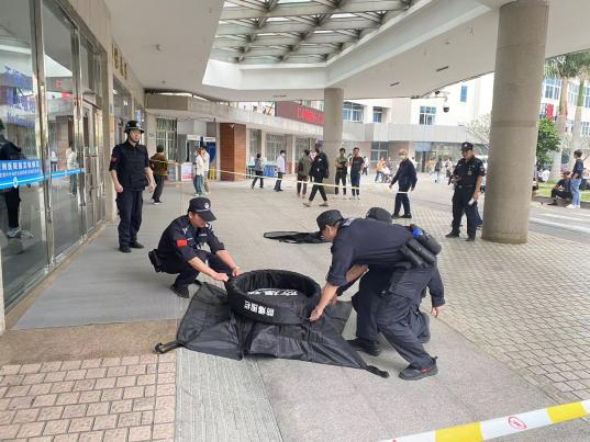 2024年4月2日下午,勤務分隊在門診A區(qū)組織反恐防爆演練,模擬發(fā)現(xiàn)爆炸物,通過示范演練提升全隊對爆炸物的處置能力。