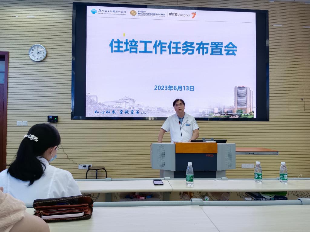 為了進一步落實整改措施,全面提升住培質(zhì)量,2023年6月13日下午在科教樓401教室召開住培工作任務(wù)布置會,各專業(yè)基地教學主任、基地秘書及輪轉(zhuǎn)科室教學秘書出席會議。本次會議由教學部黃正接主任主持,王占祥院長作重要講話。