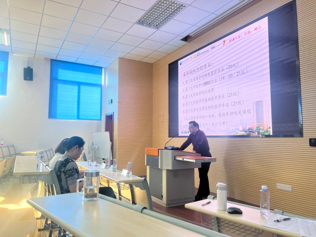 緊接著,教學(xué)部劉甫軍、林雅明老師分別就各自所分管的廈門大學(xué)醫(yī)學(xué)院、廈門醫(yī)學(xué)院的各項(xiàng)教考務(wù)工作做了匯報(bào)和下半年任務(wù)布置,強(qiáng)調(diào)新學(xué)期要繼續(xù)做好各項(xiàng)教學(xué)工作。