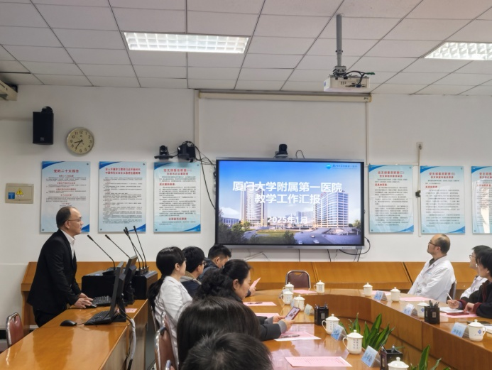 為積極響應(yīng)國家關(guān)于提升專業(yè)型碩士研究生(專碩)培養(yǎng)質(zhì)量的號召,進一步優(yōu)化專碩培養(yǎng)體系,2025年1月17日,廈門大學(xué)醫(yī)學(xué)院副院長張杰、黨委副書記辛?xí)缘?、團委書記邱超超和研究生教學(xué)秘書李娟一行蒞臨我院進行深入交流。會議在我院科教樓218會議室舉行,我院副院長陳學(xué)勤、教學(xué)部主任黃正接、副主任張淑華及各基地教學(xué)主任秘書等出席了會議。