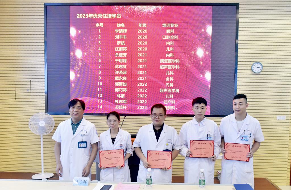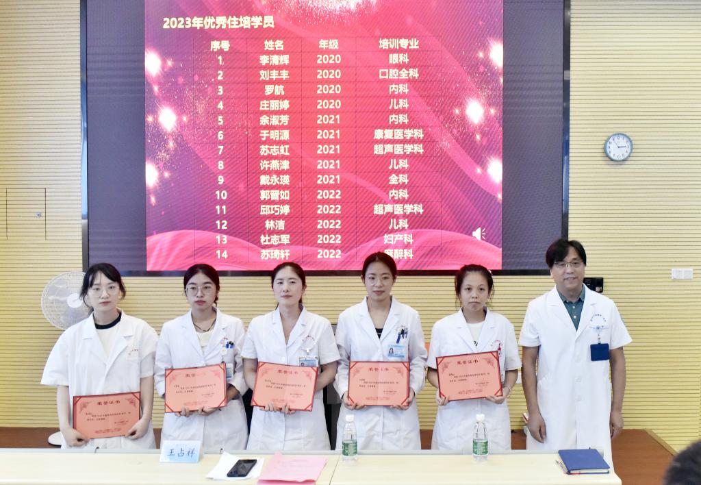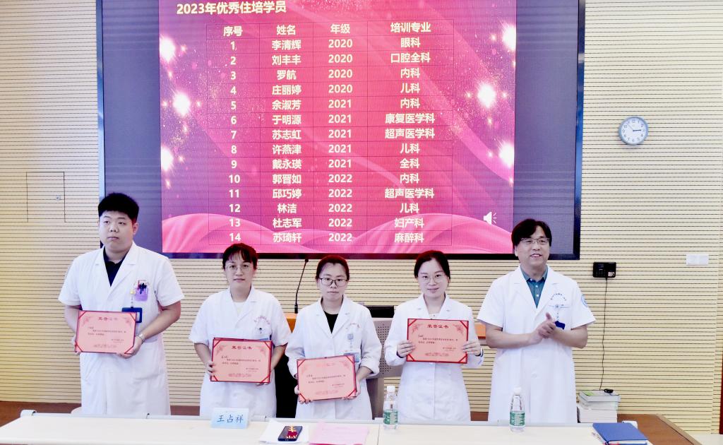 接著,黃正接主任宣布了本年度優(yōu)秀住培學員名單,并由王占祥院長為榮獲稱號的14名學員頒發(fā)了榮譽證書。
