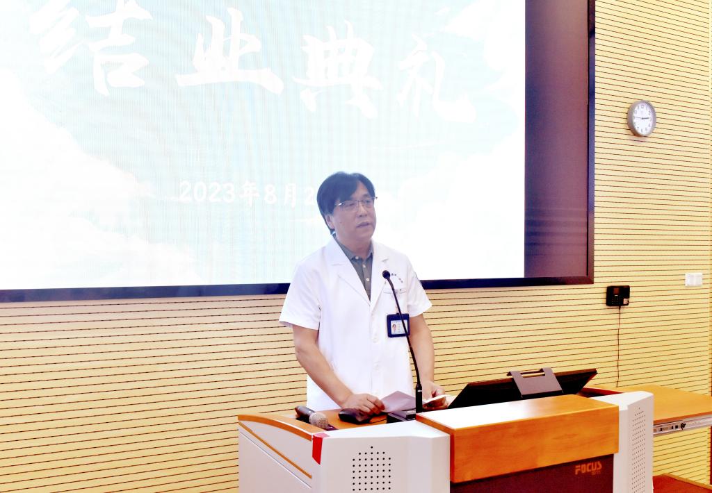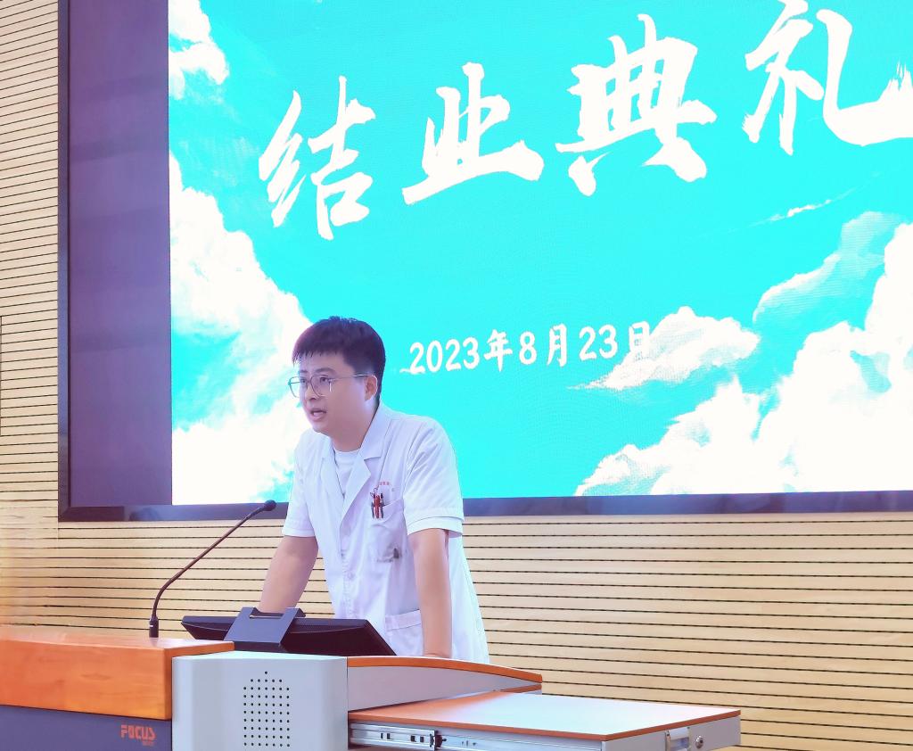 結業(yè)醫(yī)師張毅龍代表結業(yè)的醫(yī)師們感謝院領導的重視,教學部老師默默的支持,還有科室主任及所有師長無私的傳業(yè)授惑。他表示今后將繼續(xù)謹記醫(yī)院教誨,不忘初心繼續(xù)在自己的崗位上守護人民的健康。