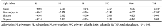 表2. 肺泡灌洗液中MP濃度與α多樣性指數(shù)的相關(guān)性分析
