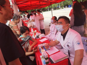活動當天我院組織了內(nèi)分泌糖尿病科、中醫(yī)科、兒科、消化內(nèi)科、公衛(wèi)科及制劑室共13名醫(yī)護人員及黨支部成員至現(xiàn)場為群眾進行義診及健康宣教。義診現(xiàn)場專家們向到場咨詢的群眾進行了健康方面的詳細解答,通過了解群眾生活習慣等普及疾病防治相關(guān)的健康知識,并對群眾關(guān)心的疑難病例進行講解,活動深受好評。本次義診共接診100余人,發(fā)放宣教材料200余份,民眾憑處方領(lǐng)取院內(nèi)制劑50余份。