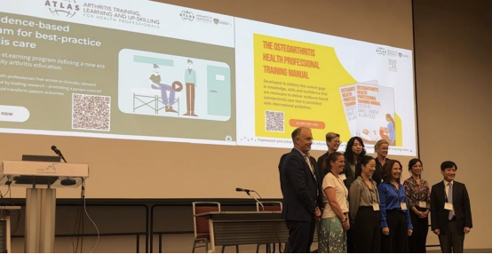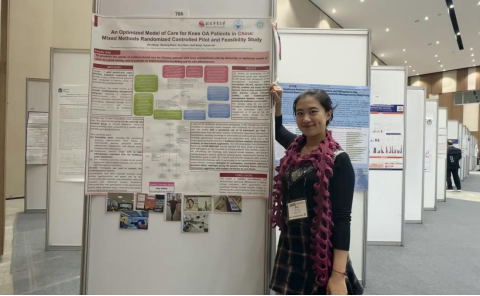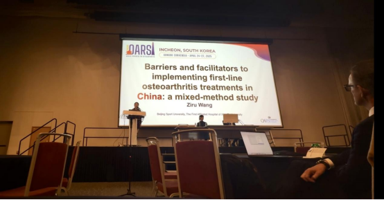 繼去年受邀參加OARSI2024年會后,倪國新教授團隊今年受邀在OARSI2025年后上以“Barriers and facilitators to implementing first-line osteoarthritis treatments in China: A mixed-method study”為題做了演講匯報,并以“An optimized model of care for knee osteoarthritis in China: Mixed methods randomized controlled pilot and feasibility study”為題做了墻報匯報。