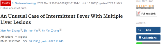 4. Xiao-Fen Zhang, Zhi-Kun Yin, Jin-Yan Zhang. An Unusual Case of Intermittent Fever With Multiple Liver Lesions. Gastroenterology. 2022; S0016-5085(22)01384-1. 1區(qū)IF: 33.883