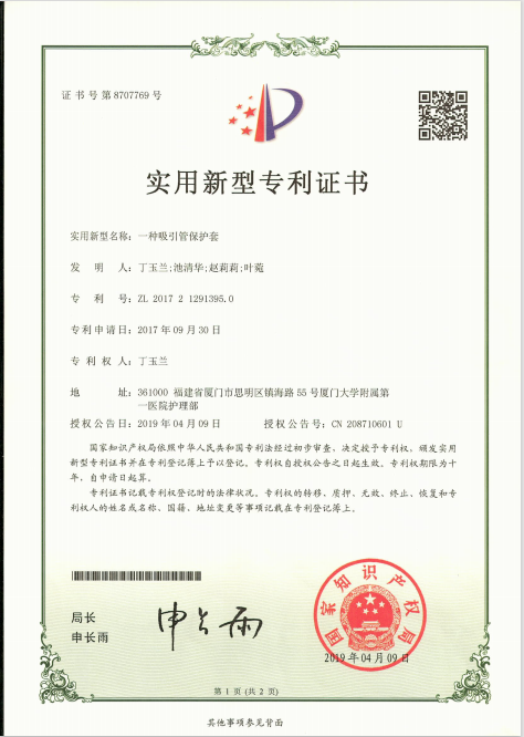 5月19日,廈門大學(xué)附屬第一醫(yī)院舉行一周內(nèi)的第二場專利成果轉(zhuǎn)化簽約儀式,第一醫(yī)院護(hù)理教研室丁玉蘭主任創(chuàng)新發(fā)明的兩項專利,“一種便于放置的胃管”和“一種吸引管保護(hù)套”被企業(yè)選中,即將轉(zhuǎn)化成市場產(chǎn)品運(yùn)用于臨床。
