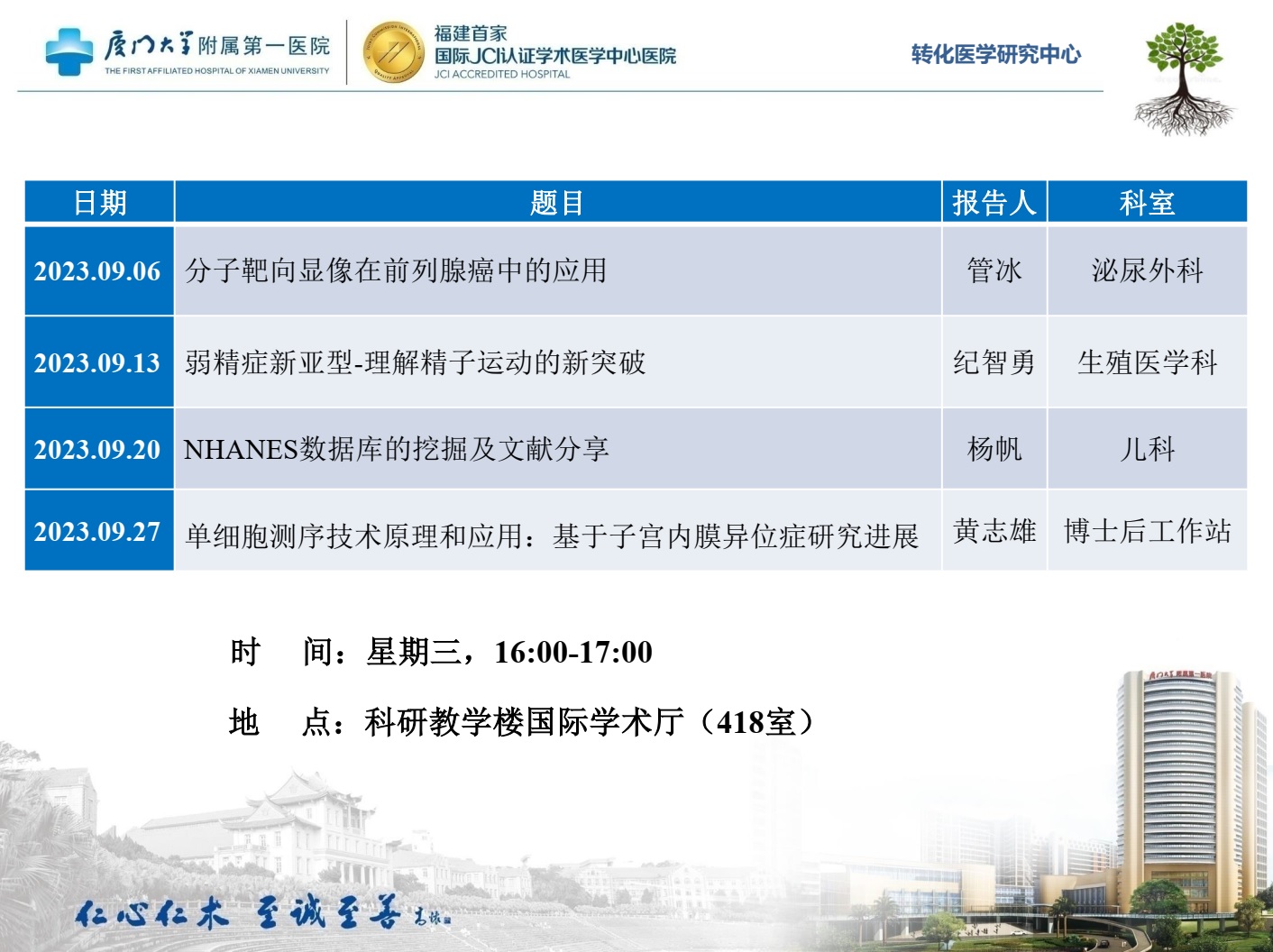 下一條:2023年9月轉(zhuǎn)化醫(yī)學(xué)研究中心聯(lián)合科研門診排班表